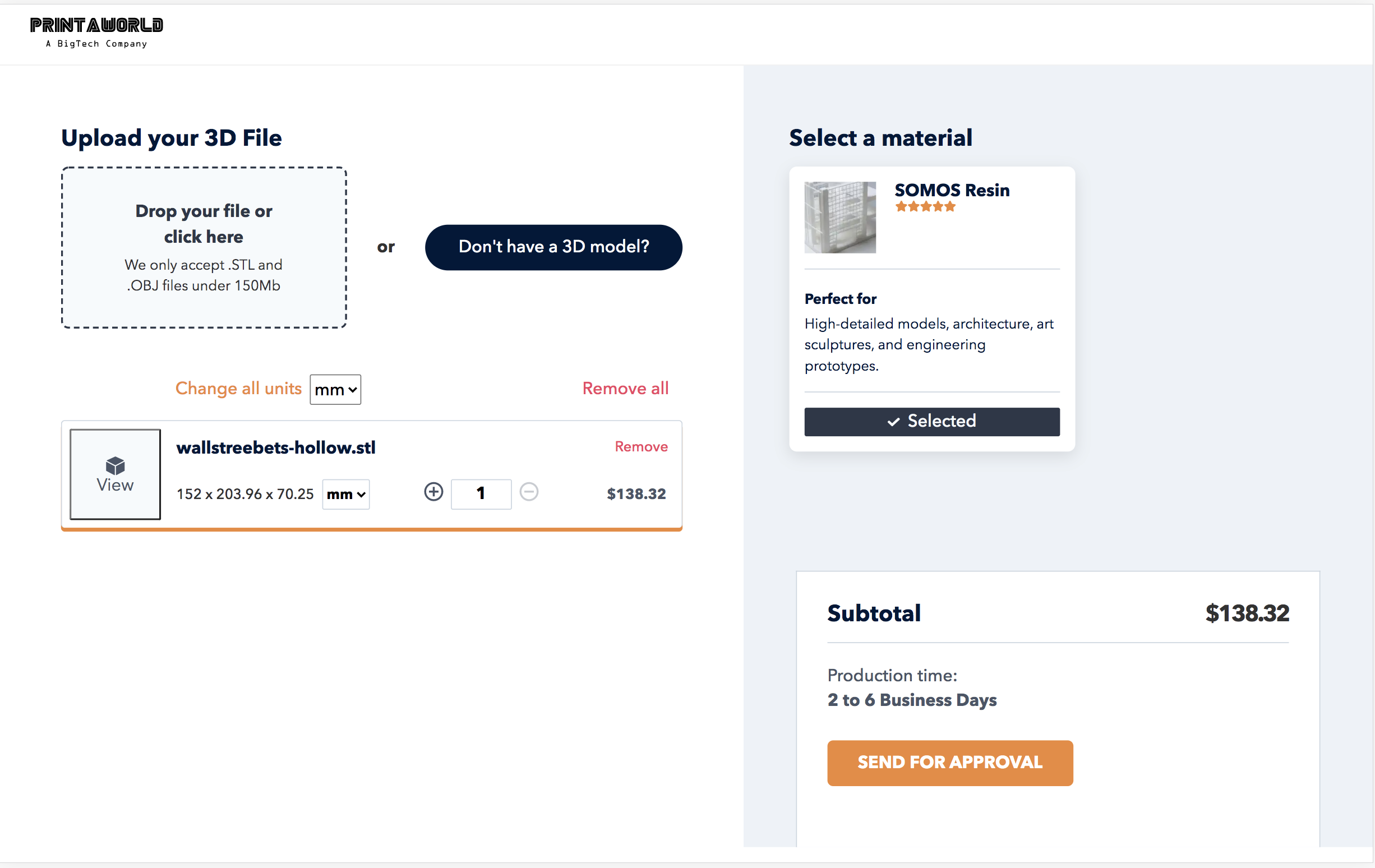 Disclaimer. This is our 3D printing company. For SLA 3D printing, we are definitely the cheapest compared to the others in this group. Removing the supports and polishing is even included in the service.